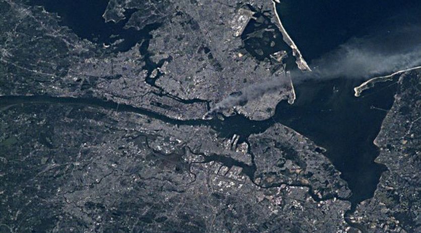 La impactante imagen que distribuyó la NASA. Desde el espacio, la estela de humo cruzaba Brooklyn, rozaba Long Island y superaba la costa de New Jersey
