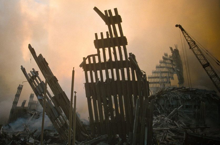 Como fantasmas en la niebla, los escombros del WTC estuvieron varios meses recordando el atentado, hasta que fueron removidos. Hoy, una fuente homenajea a las 3.000 víctimas. (Photo by Porter Gifford/Corbis via Getty Images)