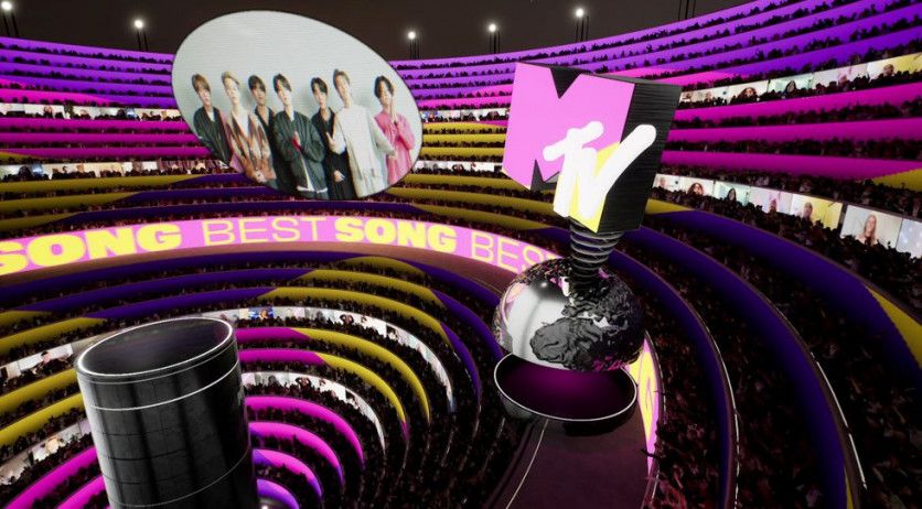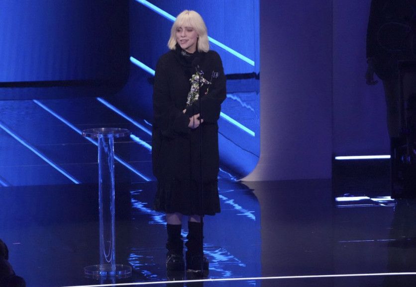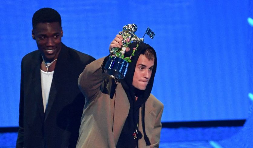 Justin Bieber fue otra de las estrellas de la noche. El canadiense se llevó el galardón a la mejor canción pop por 'Peaches'. ANGELA WEISS AFP Justin Bieber, la banda coreana BTS y Olivia Rodrigo, entre los galardonados en un espectáculo que contó con público en la sala