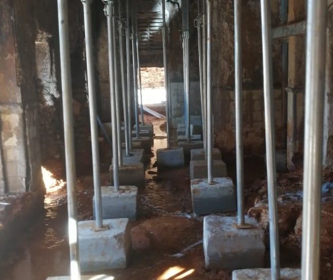 En cuanto a los puntales, se colocaron sobre tarimas de hormigón hecho con cemento de alta resistencia a los sulfatos.