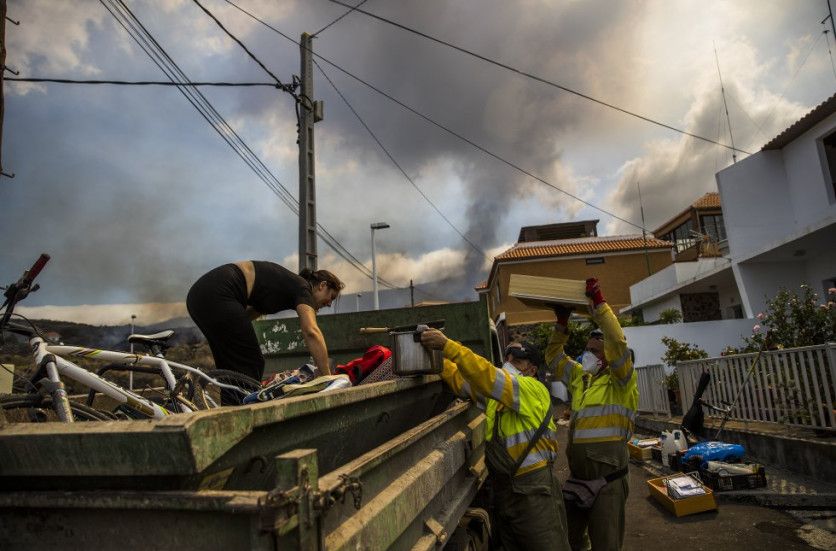 Una vecina recoge sus pertenencias después de ser evacuada, tras la erupción volcánica en la Cumbre Vieja, en La Palma. SAMUEL SÁNCHEZ