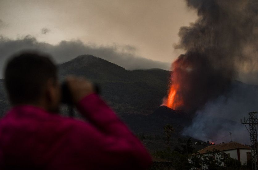 Un hombre observa con prismáticos la erupción volcánica en Cumbre Vieja, La Palma. SAMUEL SÁNCHEZ