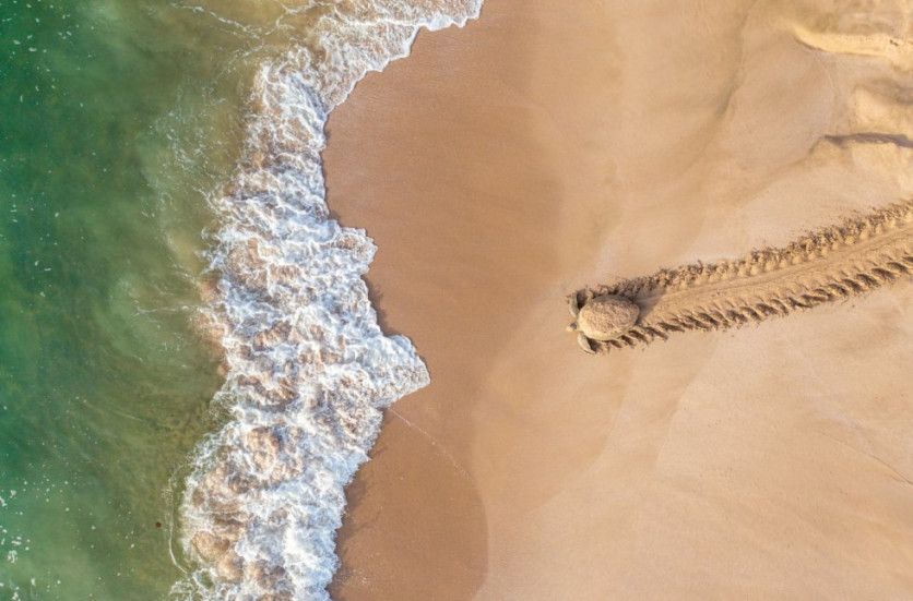 Back to Adventure (De vuelta a la aventura) Un ejemplar de tortuga verde regresa al mar tras desovar en una playa de la costa de Omán, entre Ras Al Jinz y la reserva de tortugas de Rashad. Una imagen que ha sido la elegida en la categoría 'Wildlife'. QASIM AL FARSI