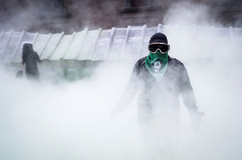 Una manifestante camina entre los gases lanzados por la policía tras la marcha por la legalización del aborto en Ciudad de México. El pasado 7 de septiembre la Suprema Corte de Justicia del país sentenció que ya nunca una mujer pisaría la cárcel por haber frenado su gestación. TOYA SARNO JORDAN REUTERS