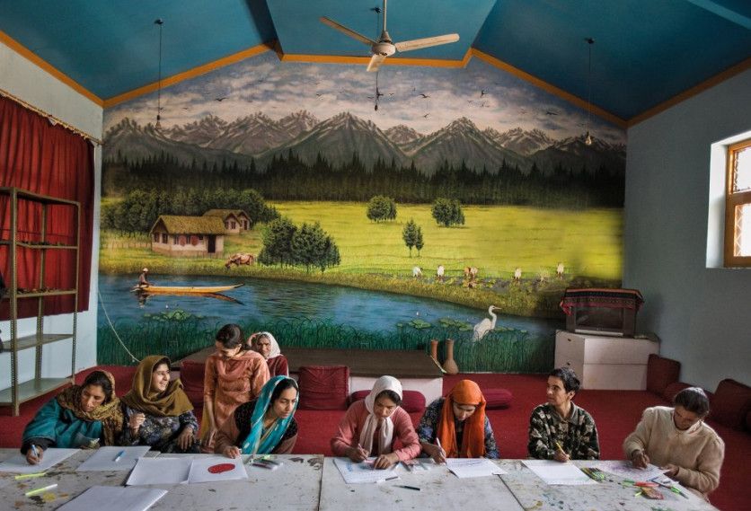 7. Srinagar, Jammu y Cachemira, India, 2009. Tras regresar de un reportaje, el periodista Juanjo Millás escribía: «En cada casa, una carpeta desgastada guarda papeles de un secuestro, una tortura, una desaparición; es la locura que se respira en el estado indio de Cachemira». Antes de 1989, cada año se registraban unos 6000 pacientes con enfermedad mental. Veinte años después, eran más de 100 000. El hospital especializado de Srinagar contaba con un pabellón para mujeres, donde trabajaba un equipo de psicólogas de MSF. Las artes plásticas formaban parte fundamental del tratamiento. JUAN CARLOS TOMASI MSF