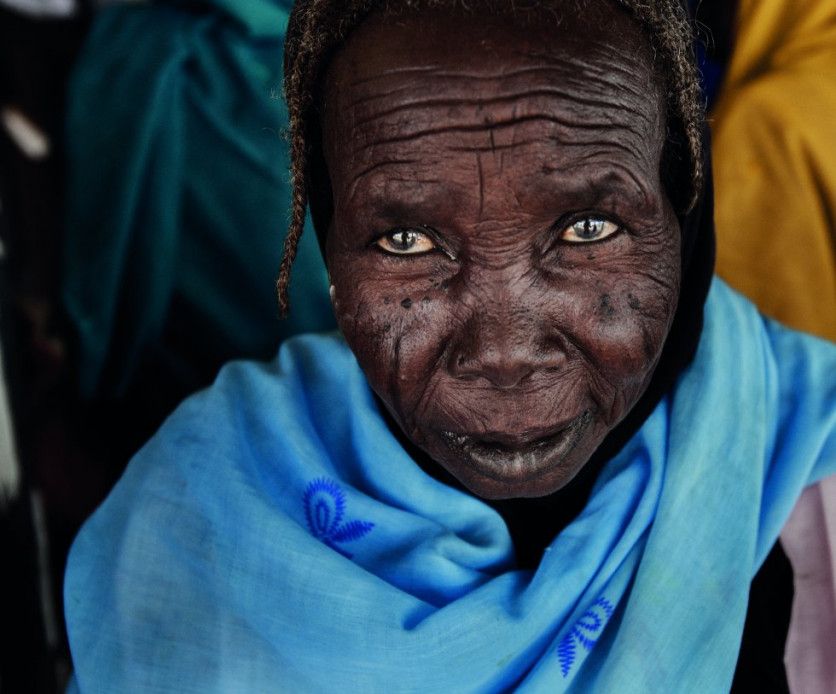 16. Tawila, Sudán, 2010. Todas las mujeres hablaban con ella en voz alta. La llamaban Hajje. Sus oídos no eran los de antaño. No sabía su edad. Tuvo que huir en 2003 y regresó a Tawila, su pueblo, años más tarde. Lucía el porte de una gran dama. Ese día no había comido, ni bebido leche ni té. Estaba sentada, esperando su turno en una clínica móvil de Médicos Sin Fronteras, a las afueras de Tawila. Hablaba pausada, encogida en sus recuerdos, y no dejaba de mirar y sonreír. JUAN CARLOS TOMASI MSF