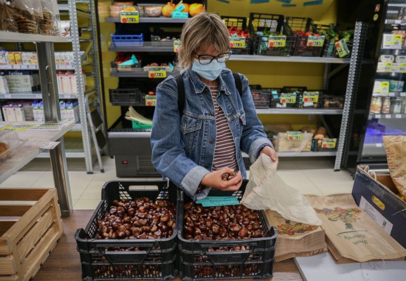 Una socia del supermercado cooperativo La Osa, en el norte de Madrid, compra productos de temporada y de proximidad. El establecimiento tiene unos 400 metros de superficie de compra y dispone de un rincón agroecológico, un tipo de producción sostenible y vinculada a la tierra, a las buenas condiciones laborales y a la proximidad. AITOR SOL