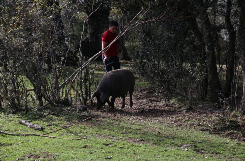 "Siempre ha habido cocineros apostando por el producto de proximidad, y desde luego se va a hacer cada vez más. No puedes dar un buen producto si no tienes una buena relación con el productor o lo produces tú mismo", dice Diego Sandoval, jefe de sala de Coque. En la finca han empezado a criar cerdos ibéricos con el objetivo de elaborar sus propios embutidos. AITOR SOL