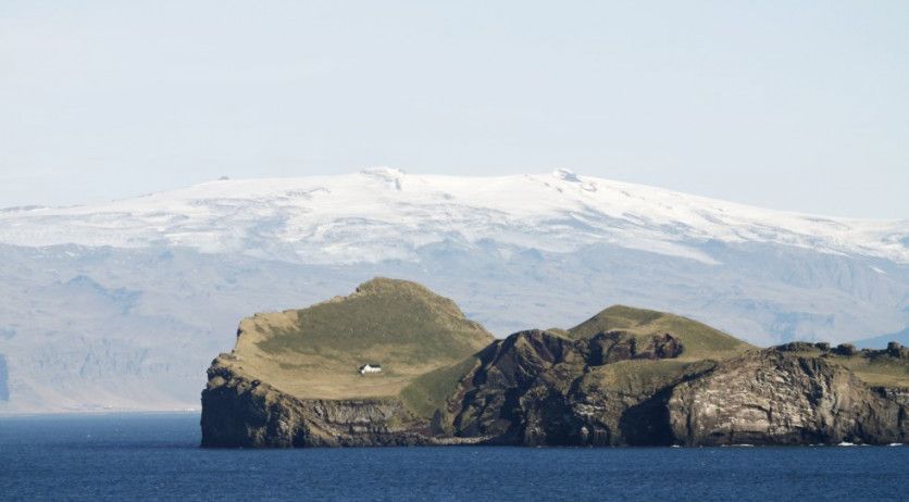 1) La isla de Heimaey forma parte de un archipiélago al sur de Islandia. En la imagen, la isla Elidaey y al fondo el volcán Eyjafjallajökull, que entró en erupción en 2010 parando el tráfico aéreo mundial.