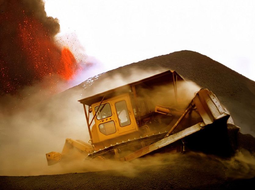 4) Los voluntarios que quedaron en la isla se afanaron en la construcción de diques y barreras de ceniza para frenar la lava.