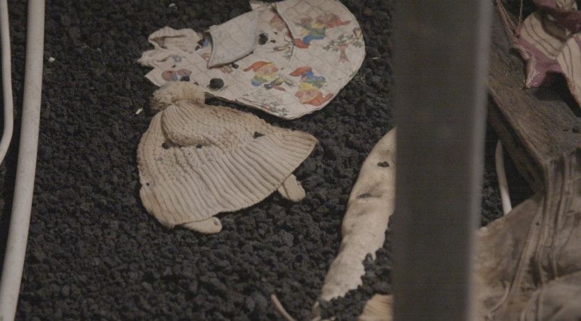 9) Ropa de niño desenterrada de las cenizas y expuesta en el museo Eldheimar en Heimaey.