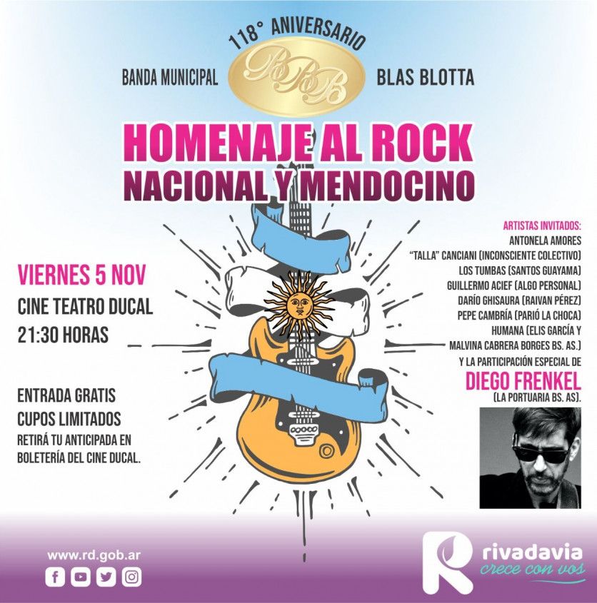 En esta ocasión presenta un espectáculo en "Homenaje al Rock Nacional y Mendocino", donde interpretarán obras de: Charly García, Alberto Spinetta, Fito Páez, Sumo, Soda Stereo, Virus, La Portuaria, Enanitos Verdes, Alcohol Etílico, Raivan Perez, Karamelo Santo, entre otros.
