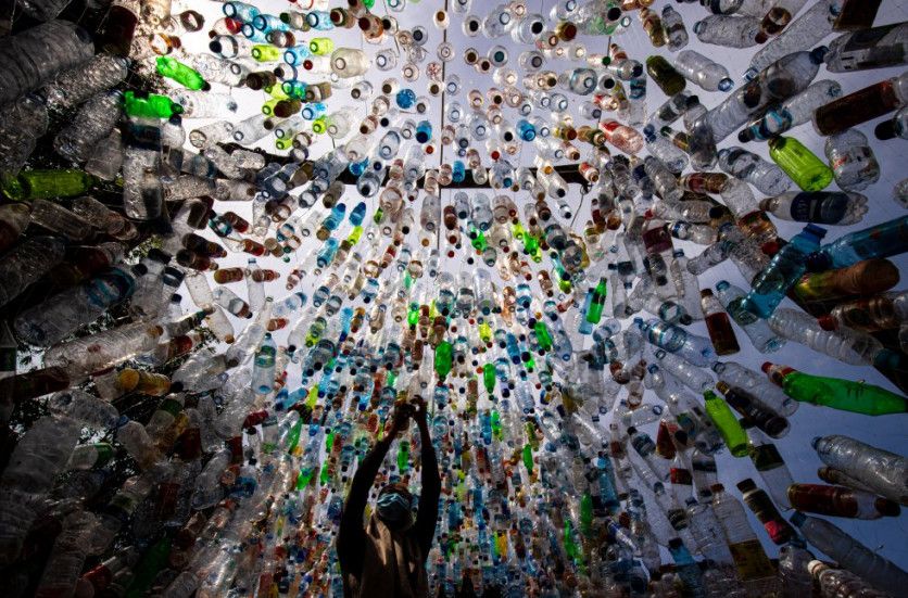 Un mensaje Nueva vida para 4.000 botellas. La organización ecologista Ecoton ha inaugurado en la ciudad de Gresik, en la isla de Java (Indonesia), un museo compuesto únicamente con desechos plásticos: más de 4.000 piezas, entre bolsas, botellas, tapones y pajitas. El Fish Fersus Flastik, abierto al público desde comienzos de septiembre, coincidiendo con el arranque del curso escolar en Indonesia, pretende concienciar al mundo sobre el grave e irreversible daño que ocasionan los residuos plásticos en la contaminación de ríos y océanos. Bajo el lema Dejemos de comer plástico, los activistas medioambientales advierten de que este material es una de las mayores amenazas para nuestra salud, ya que es ingerido por los peces y después acaba pasando a la cadena alimentaria. Indonesia produce cada año ocho millones de toneladas de desechos plásticos. Un informe de la FAO vaticina que para 2050 habrá más plásticos que peces en los ecosistemas marinos. Basura que genera el hombre y que mata un millón de aves y 100.000 mamíferos al año. R. PUDYANTO GETTY IMAGES