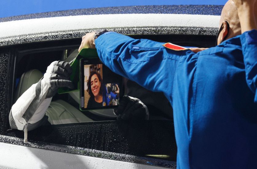 El astronauta Matthias Maurer, de Alemania, habló con su familia a través de una tablet antes de abordar el cohete