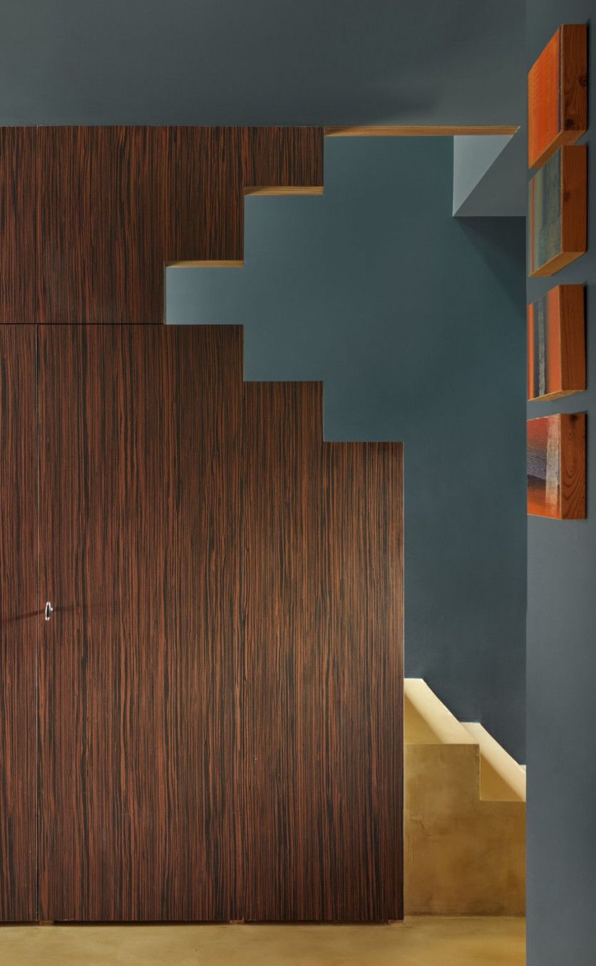 La escalera es de madera de roble rechapado de zebrano. Eugeni Pons
