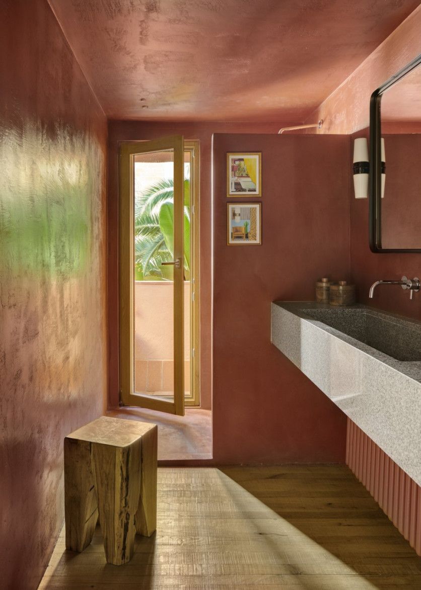 El baño está construido de microhormigón. Y el lavabo es una pieza de granito hecha a medida. Eugeni Pons