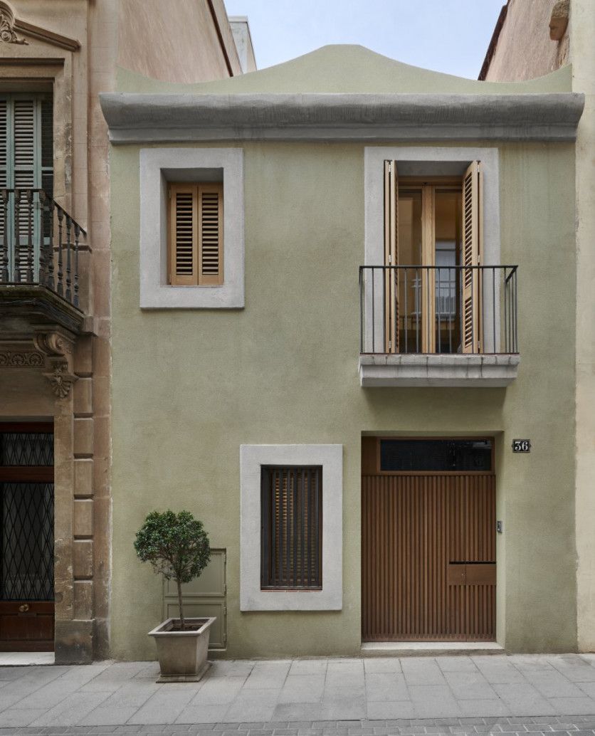 Fachada en tono raspado musgo. Eugeni Pons