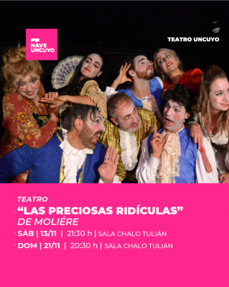 El domingo 21 noviembre ase presenta nuevamente el Elenco de Teatro de la UNCuyo con la segunda función de su obra recién estrenada "Las preciosas ridículas" de Moliére. El evento se llevará a cabo en la sala Chalo Tulián de la Nave universitaria.