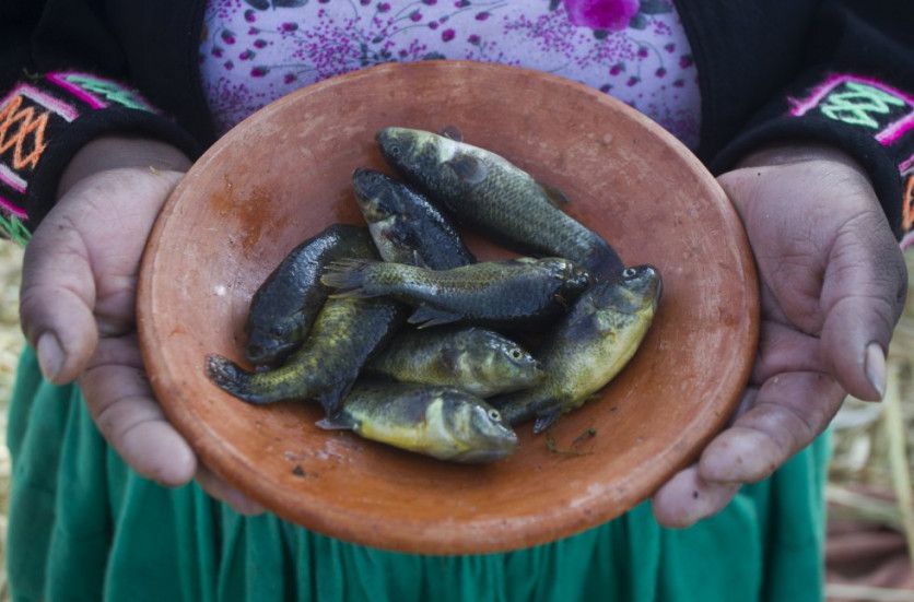 La pesca del día de la pareja de Enrique y Angélica. Apenas ocho ejemplares de carachi, el pez que todavía se puede capturar y encontrar en los mercados de Puno, la ciudad del lago. JUAN CARLOS CISNEROS