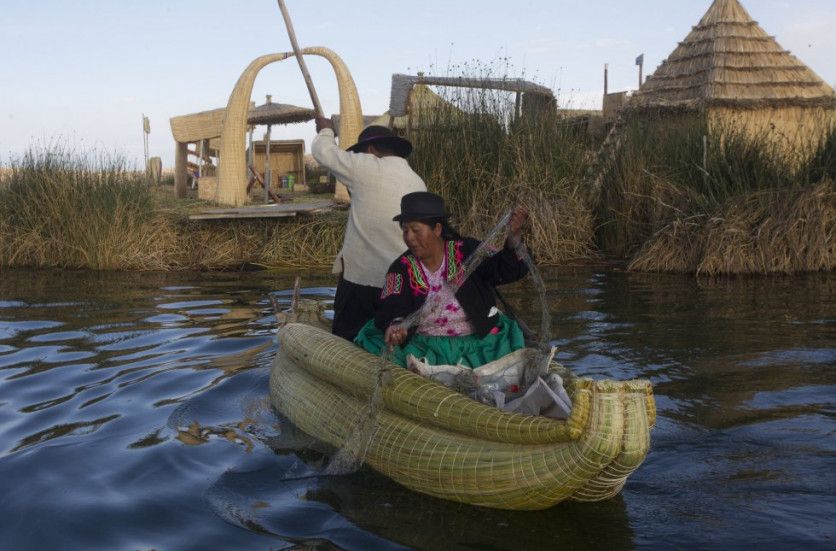 Tanto entre los uros como entre los habitantes aimaras, es habitual que las mujeres se dediquen a la pesca, pero a la vez a la artesanía. Sobre todo porque la actividad pesquera decae. JUAN CARLOS CISNEROS