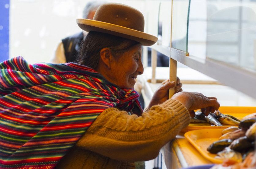 En el mercado Unión Dignidad de la ciudad de Puno, una mujer se dispone a comprar pescado. Encontrará algunas especies de carachi, pero ya no al extinto humanto o a la escasa boga. JUAN CARLOS CISNEROS