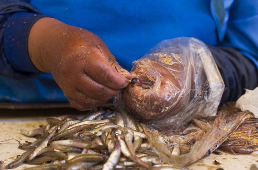 Una vendedora de pescado limpia varios ejemplares de ispi, otra especie nativa, la única que anda en cardumen y que ha sido igualmente impactada, pero aún se encuentra en los mercados. JUAN CARLOS CISNEROS
