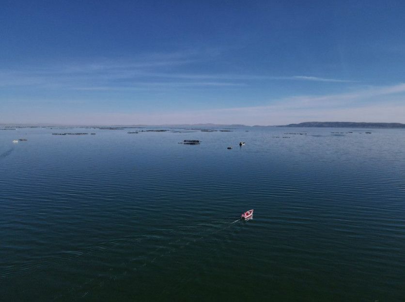 El lago Titicaca en parte de su inmensidad. Se encuentra a más de 3.800 metros de altura y tiene una extensión de 8.200 kilómetros cuadrados compartidos por dos países: Perú y Bolivia. JUAN CARLOS CISNEROS