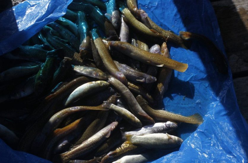 Una carga de peces diversos desembarcando en las cercanías de la ciudad de Chucuito. Se observan mauris, carachis de más de una especie. No abundan como antes. JUAN CARLOS CISNEROS