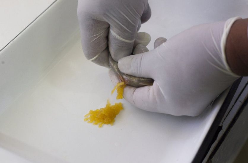 En la planta del Proyecto Especial Lago Titicaca ubicada en Chucuito, se procede a sacar la huevera a un ejemplar hembra de la especie llamada mauri. Pronto será fecundada. JUAN CARLOS CISNEROS