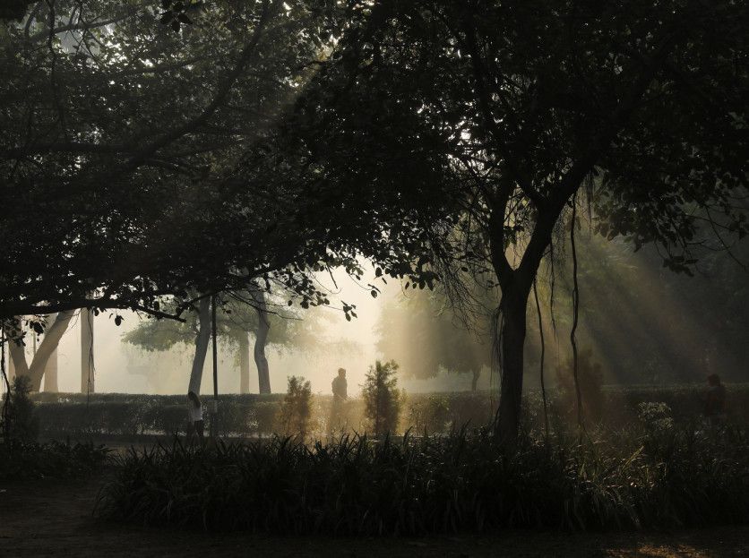 La gente camina en una mañana con niebla tóxica en Lodhi Garden en Nueva Delhi, India, 16 de noviembre de 2021. REUTERS / Anushree Fadnavis