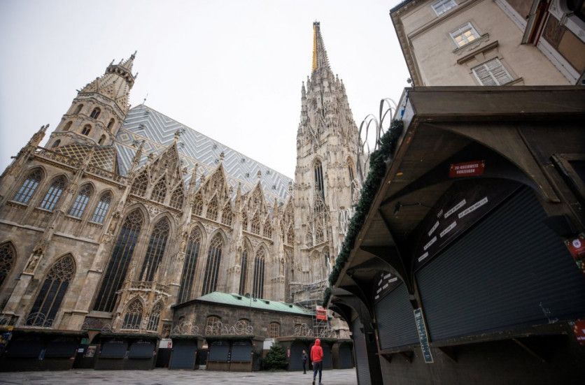Austria ha vuelto este lunes a cerrar el comercio no esencial, la gastronomía, museos, eventos culturales y espectáculos, convirtiéndose en el primer país de Europa que impone un confinamiento total para frenar la cuarta oleada de la covid en este invierno. En la imagen, mercadillo cerrado cerca de la catedral de San Esteban en Viena, este lunes. LISI NIESNER REUTERS
