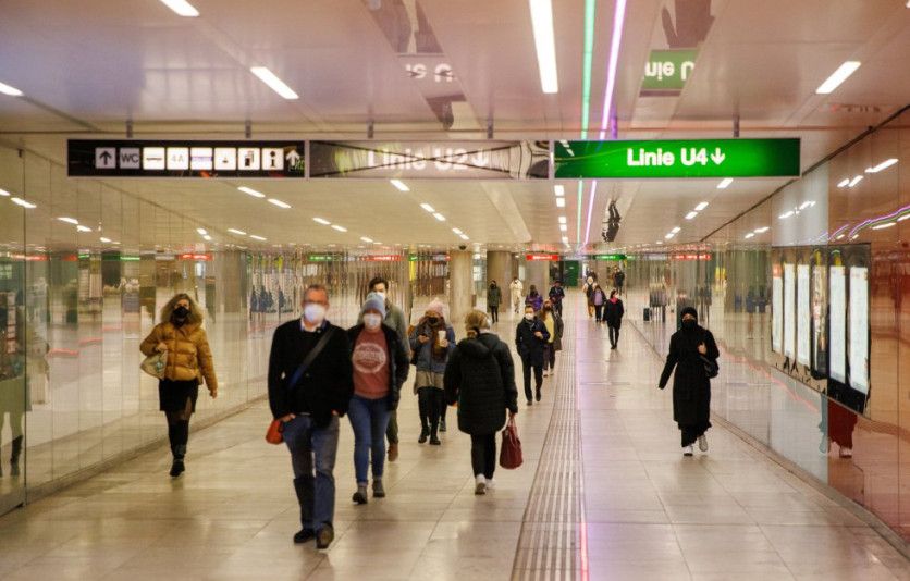 Varias personas caminan por una estación de metro de Viena (Austria). El Gobierno, formado por conservadores y ecologistas, anunció el nuevo confinamiento el pasado viernes tras registrarse varios récords de nuevas infecciones y solo cinco días después de que se impusieran restricciones solo para los no inmunizados. LISI NIESNER REUTERS