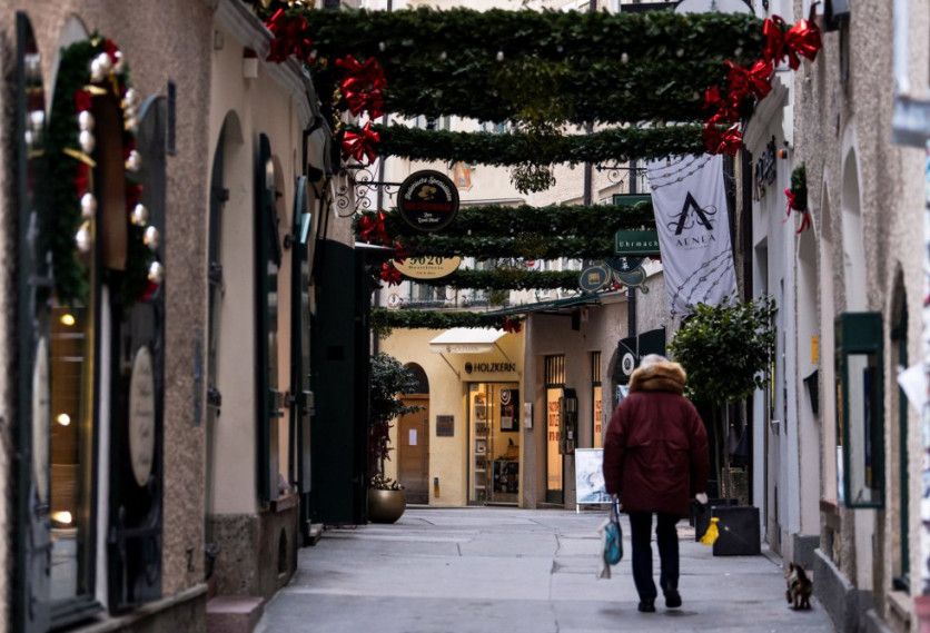 Una persona camina por una calle de Salzburgo. Las medidas regirán previsiblemente durante 20 días, hasta el 12 de diciembre, aunque deberán ser prolongadas mediante decreto a final de mes. LUKAS BARTH REUTERS
