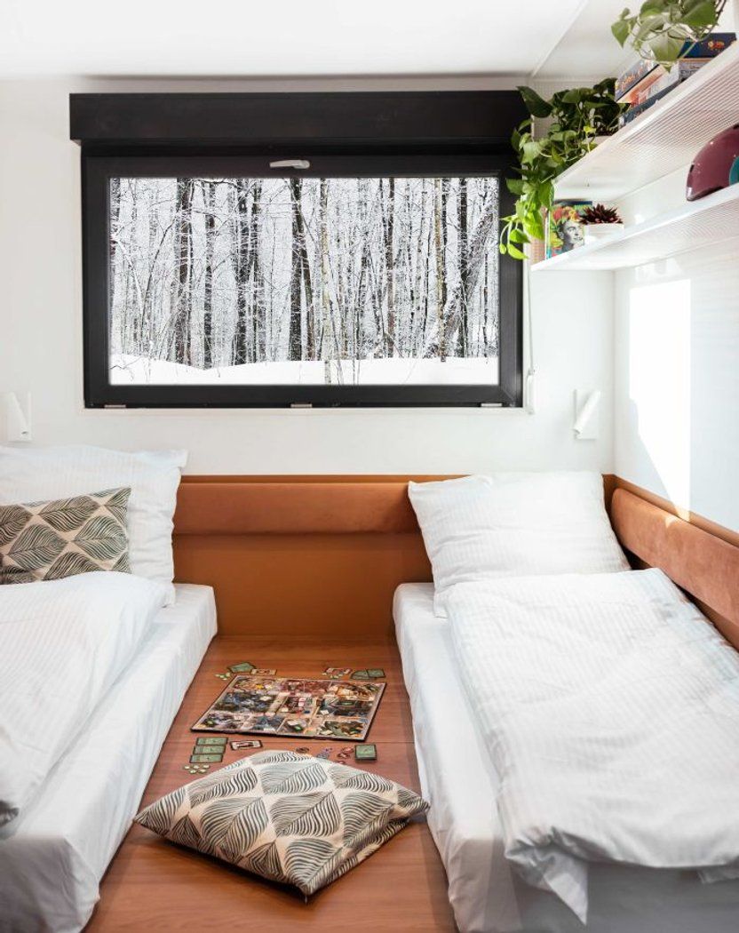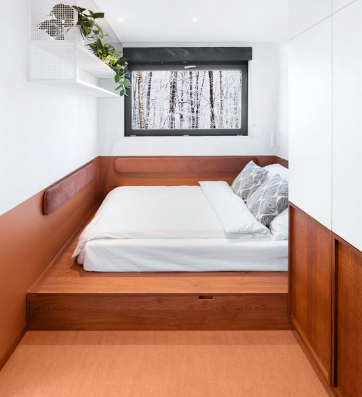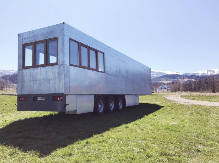 En Polonia, un estudio de arquitectura llamado Znamy Sie ha convertido un remolque frigorífico que ya estaba en desuso en un hotel sobre ruedas. Tiene capacidad para cuatro personas y destaca por sus acabados en blanco y madera y por sus grandes ventanas. La primera unidad ya se ha completado y las tres restantes que están proyectadas están en camino.