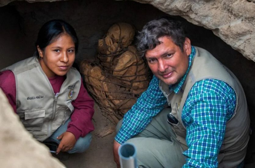 "Hemos logrado el descubrimiento de una momia que se encontraba ubicada al interior de una estructura funeraria de forma cónica subterránea y al ver las características se trataba de una momia que se encontraba amarrada con soguillas", dijo a la agencia de noticias AFP el arqueólogo Pieter Van Dalen, responsable del proyecto Cajamarquilla.