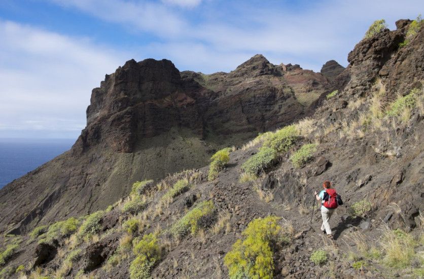Por el GR 132 en La Gomera: un sendero remoto en el Atlántico Cuando se habla de las islas Canarias la mayoría de los viajeros piensa en los hoteles y las playas de Tenerife, Lanzarote y Gran Canaria. Pero el archipiélago ofrece innumerables oportunidades para hacer excursiones y descubrir una geografía sorprendente en medio del Atlántico. Una de las mejores discurre por el perímetro de la segunda isla más pequeña, La Gomera: es el GR 132, que se puede recorrer en una semana. Siguiendo la costa en la dirección de las agujas del reloj se pasa por terrenos muy diversos con microclimas variados: desde acantilados hasta antiguos bosques nubosos y valles de palmeras, que en muchas ocasiones están cubiertos de bruma. La sensación que produce es la de estar en una isla olvidada por el tiempo (y por los turistas). Cada etapa acaba en un pueblecito -donde se pueden comprar provisiones y sobre todo agua-, y puede que se vean incluso delfines y ballenas. La ruta completa son 122 kilómetros y podemos realizarla de forma circular, con inicio y final en San Sebastián de La Gomera. MARTIN SIEPMANN GETTY IMAGES