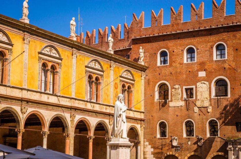 Il Cammino di Dante: siguiendo una leyenda literaria Este paseo meditativo sigue las huellas de poeta italiano y es una delicia para viajar despacio. Il Cammino di Dante, de 20 etapas, parte de Rávena, en el fértil valle del Po, y atraviesa los Apeninos hasta llegar a Florencia. Sigue los pasos del poeta por Emilia-Romana y Toscana, entre dos ciudades con un gran legado cultural: Rávena, con sus mosaicos bizantinos, donde se exilió el poeta, donde completó su poema épico y donde fue enterrado; y el sueño renacentista que es Florencia, con su Museo Casa di Dante, que mantiene vivo su recuerdo en la casa donde nació. Por el camino nos encontraremos paisajes espléndidos, desde el pueblo medieval de Brisighella, con su fortaleza de ensueño, a las cascadas de Acquacheta que Dante describió como "un solo salto alimentado quizá por mil torrentes". La ruta, de Rávena a Florencia, supone 395 kilómetros que pueden hacerse en cómodas etapas. En la foto, monumento a Dante en la ciudad de Verona. OLENA ZNAK GETTY IMAGES