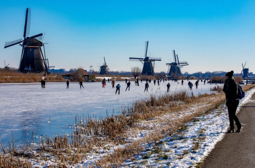 Kinderdijk: por los caminos de sirga de Holanda En los Países Bajos hay más kilómetros de canales que en cualquier otra parte el mundo, así que a quien le gusten los caminos de sirga aquí tendrá donde elegir. Una de las mejores zonas para visitar (al menos en lo que a paisaje típicamente neerlandés se refiere) es la zona de Kinderdijk, con molinos de viento a orillas del canal y pólderes que han ganado varias hectáreas de tierras bajas al mar. Hay muchos kilómetros de caminos por explorar: la ruta circular Kinderdijkpad es muy asequible y pasa por molinos, mientras que la Polderhoppen & Vogel Spotten, más larga, se aventura por la verde campiña de Alblasserwaard. Si apetece embarcarse en una ruta aún más larga, se pueden seguir los carriles-bici desde Róterdam. También es una buena excursión de un día si se toma el taxi acuático que sale desde el centro de Róterdam. La ruta circular corta, partiendo (y volviendo) de Kinderdijk, son solo 7,5 kilómetros. La ruta más larga, 17. BSR AGENCY ALAMY