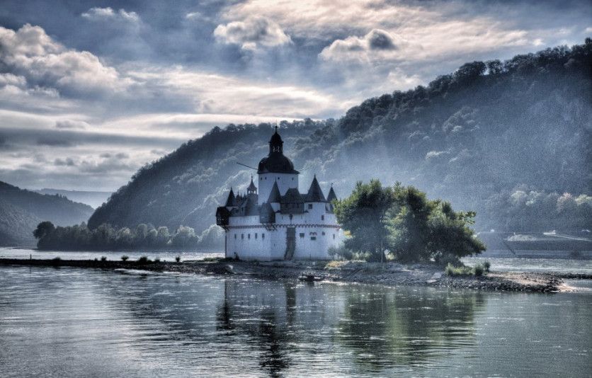 Ruta de los castillos del Rin: romanticismo siguiendo el curso del río La Rheinburgenweg abarca una sexta parte de la longitud del Rin, sin incluir la cabecera del río en Suiza ni su desembocadura en los Países Bajos, pero concentra el que quizá sea su tramo más famoso. El Medio Rin serpentea entre orillas empinadas con viñedos y pueblos antiguos como Boppard y Bacharach. Esta ruta sigue la orilla izquierda, mientras que la más exigente Rheinsteig corre paralela al extremo más alejado. El paisaje, que inspiró a poetas románticos como Heinrich Heine y Lord Byron, queda custodiado en cada etapa por castillos alzados a lo largo de los siglos desde los tiempos de los barones ladrones germánicos. Destaca el pequeño castillo de Pfalzgrafenstein (en la foto), que parece un buque de guerra en medio del río. La ruta completa son 196 kilómetros, partiendo de Rolandsbogen para terminar en Bingen. VENTURA CARMONA GETY IMAGES