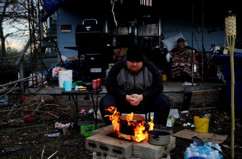 Christopher Bowlin, de 24 años, prepara la comida en el exterior de su casa destruida tras el paso del tornado en Mayfield (Kentucky). Miles de hogares están sin electricidad y es difícil hacer una predicción de cuándo retornará. CHENEY ORR REUTERS