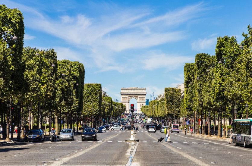 Los Campos Elíseos de París podría ser la calle más famosa del mundo. Este paseo de casi 2 kilómetros de largo, que se extiende desde la Place de la Concorde hasta el Arco del Triunfo, está bordeado por hermosos árboles (Getty Images)