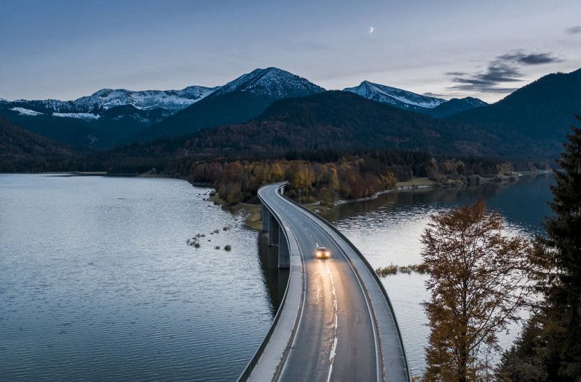 El lago Sylvenstein, en Lenggries, Alemania, cuenta con un puente suavemente curvado que logra un paisaje digno de Instagram (Getty Images)