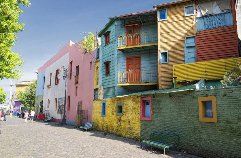 Caminito, en Buenos Aires, Argentina, recuerda las casas multicolores que construyeron los inmigrantes europeos a fines del siglo XIX con materiales y pinturas sobrantes de los muelles (Getty Images)