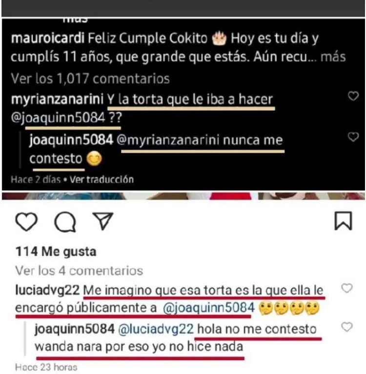 Joaquín lo confirmó en las redes sociales y aseguró en comentarios de las publicaciones de Mauro Icardi, que nunca recibió respuesta de Wanda. "Hola, no me contestó Wanda Nara, por eso, yo no hice nada", aseguró el nene pastelero.