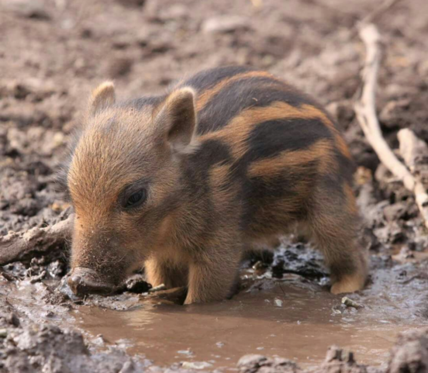 Este pequeñísimo jabalí parece más un peluche que un animal. Es adorable.