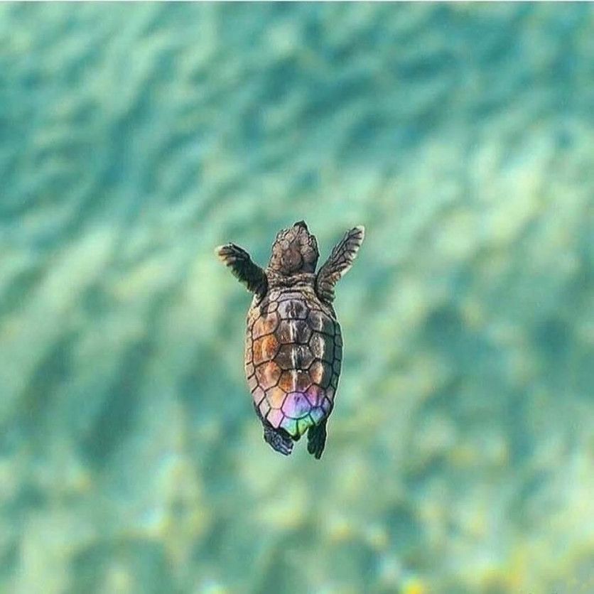 Esta tortuga es tan recién nacida que solo tiene una hora de vida. Eso sí, parece que ya disfruta a tope.