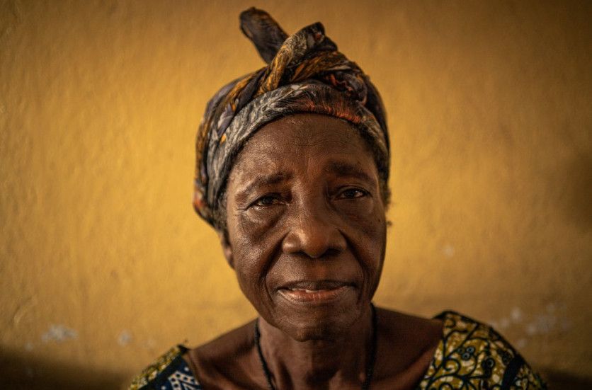 Cuando llueve, el cuartucho que un señor cedió a Marieh Palleh se inunda. Con siete hijos y nueve nietos, Palleh vende bolsitas de agua con las que obtiene alrededor de cincuenta céntimos por jornada. Su única sonrisa escapa al responder que no recuerda su edad.