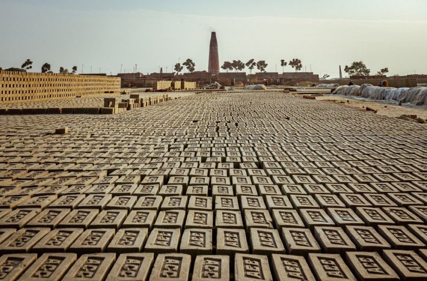 Cientos de ladrillos se secan al sol en un horno de la fábrica de Biratnagar. Los bloques de arcilla constituyen el material de construcción principal en Nepal. En los últimos años, esta industria ha experimentado un auge y se ha convertido en una fuente de ingresos para muchas familias y niños pequeños como consecuencia del terremoto del 2015 y de la pandemia de covid-19.