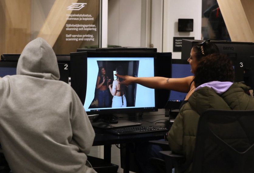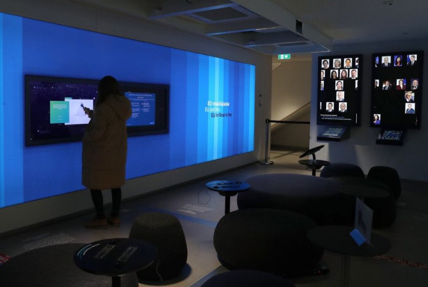 Oodi cuenta con un área dedicado a familiarizar al usuario con la Unión Europea. A través de pantallas el ciudadano puede, entre otras actividades, hacer encuestas o consultar quiénes son los representantes nacionales en las instituciones europeas. JAIME VILLANUEVA