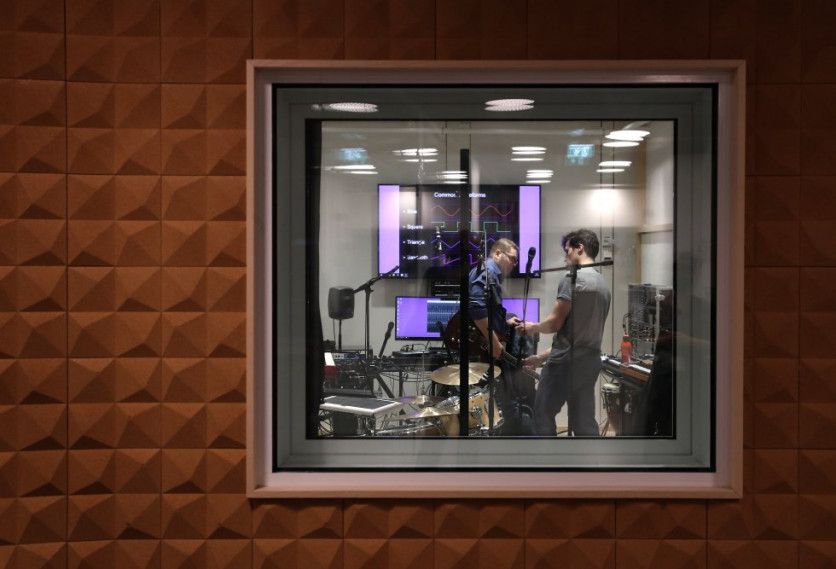 Ensayo en uno de los estudios de grabación de los que dispone la biblioteca. JAIME VILLANUEVA